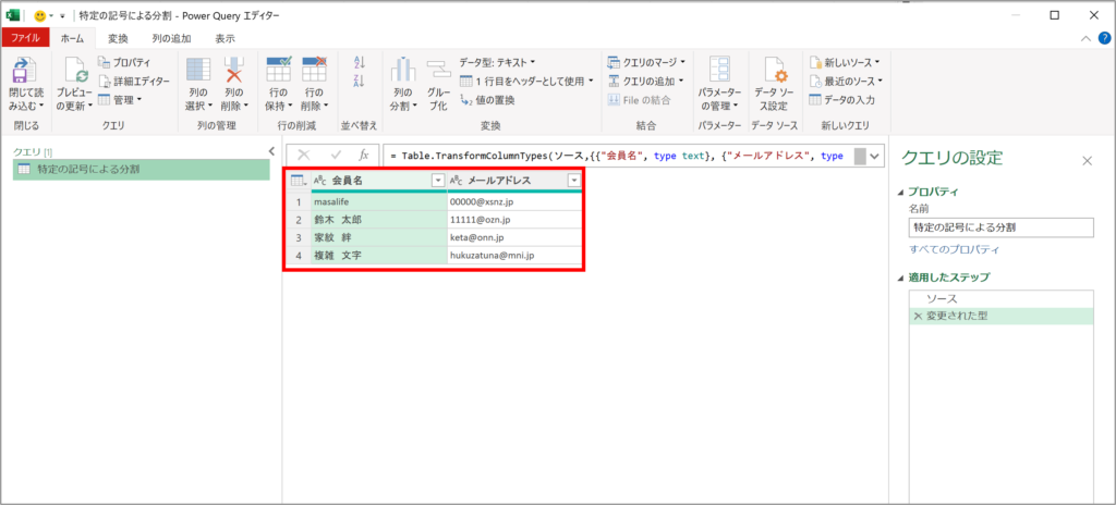 メールアドレスのように特定の記号前後で意味が明確となっているデータはぜひこの方法で分割してみてください。